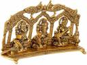 ADIYOGI Laxmi Ganesh Saraswati idol- Decorative Laxmi Ganesh Saraswati With Peacock Desi Decorative Showpiece - 15 cm (Brass, Gold)