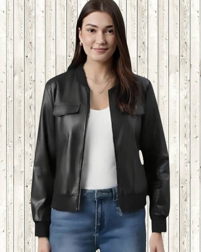 Crafted from faux leather, this jacket has a smooth texture that feels gentle against the skin while providing light protection against wind. Also, the material offers a balance between structure and flexibility, allowing for comfortable movement throughout the day. The composition ensures this jacket retains its form while adapting to different environments.