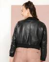 This jacket includes a ribbed collar and a central zip closure that provide both structure and ease of wear. Also, the decorative chest flap pockets add a modest functional element while maintaining the clean design. The long, slightly puffed sleeves with elasticated cuffs allow movement around the wrists and create a relaxed fit. Moreover, the slightly boxy cut with a ribbed hem contributes to an overall silhouette that is comfortable without being restrictive.