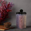 Upgrade your kitchen storage with our 4-Section Container featuring a sleek black cap. This innovative container is perfect for organizing a variety of dry food items, keeping them fresh and easily accessible. The four separate sections allow you to store different foods in one place without worrying about mixing. Whether it's grains, spices, snacks, or cereals, this container has got you covered.