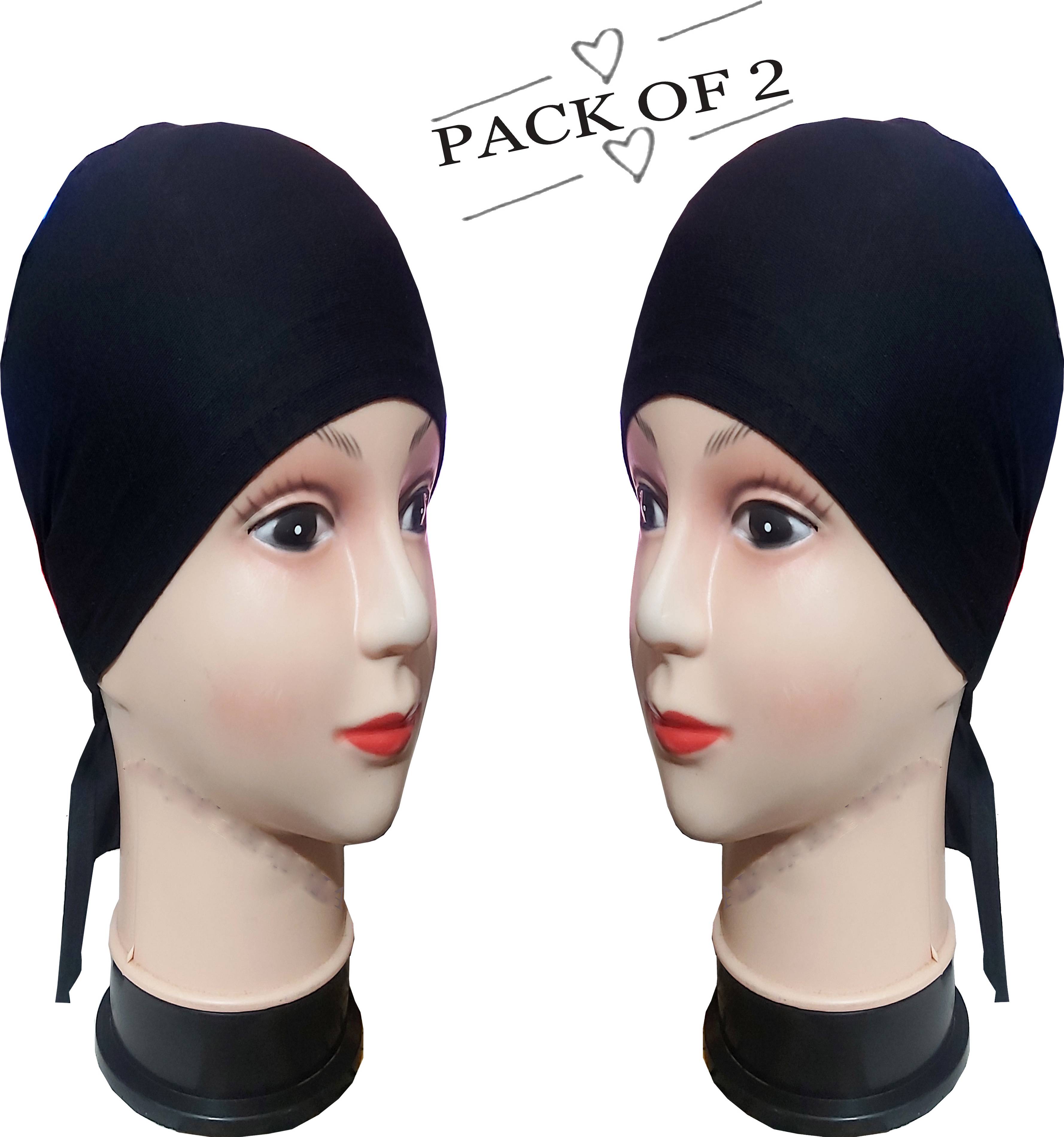 IMPORTED ABAYA HIJAB TIE CAP/UNDER HIJAB CAP FOR A BEAUTIFUL GIRLS & WOMEN,Black Cotton Hijab Caps (Pack of 2) Trendy Islamic Cap,