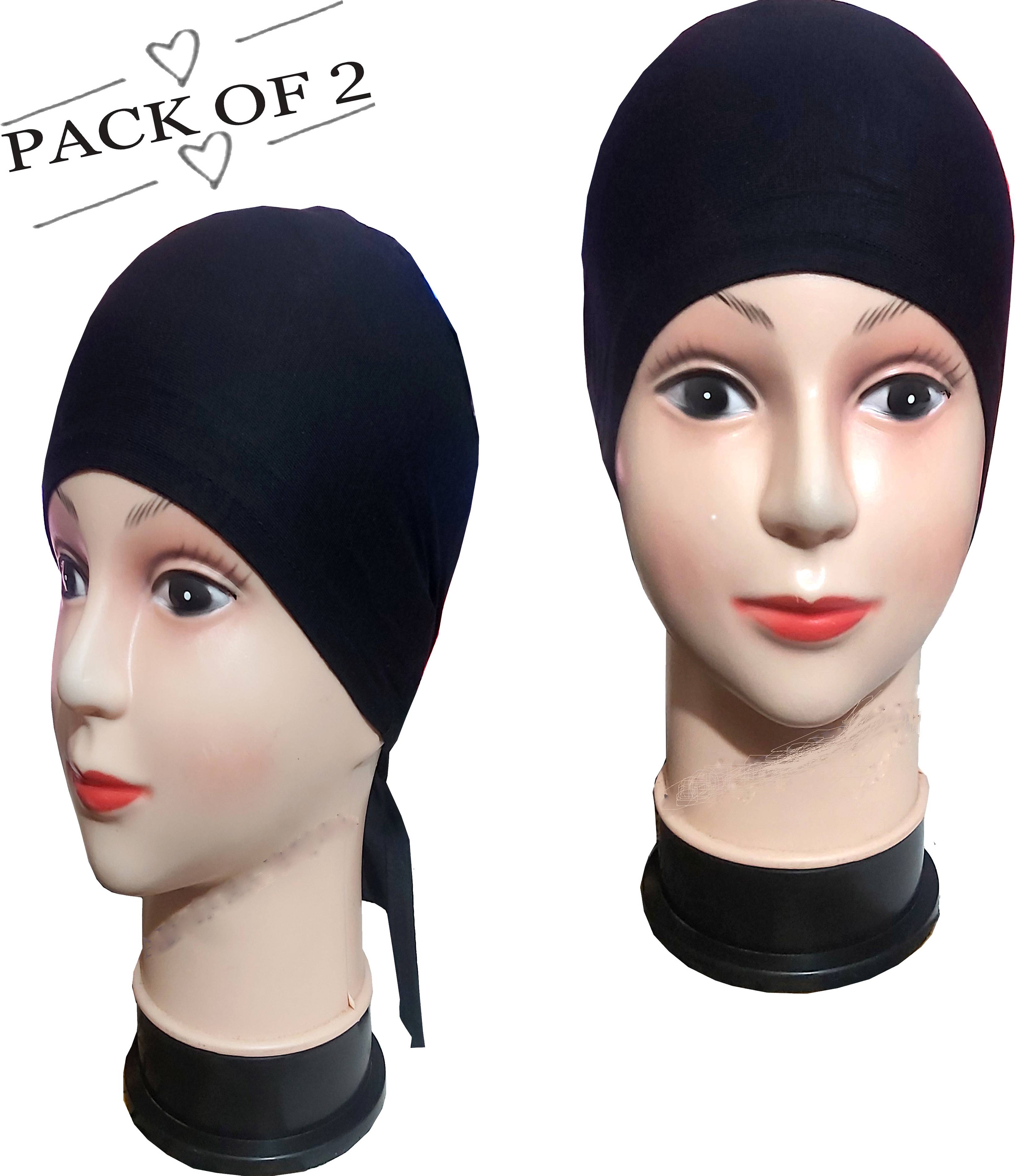 IMPORTED ABAYA HIJAB TIE CAP/UNDER HIJAB CAP FOR A BEAUTIFUL GIRLS & WOMEN,Black Cotton Hijab Caps (Pack of 2) Trendy Islamic Cap,