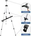 With a sleek and modern design, the easel not only serves its functional purpose but also adds a touch of sophistication to any art presentation. The aluminium construction ensures durability, making it a long-lasting investment for artists who demand quality in their tools.