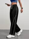 Upgrade your activewear with these stylish black wide-leg athletic pants designed for comfort, movement, and a sleek sporty look. Crafted from smooth, breathable stretch fabric, they feature contrast white side stripes that elongate the legs and add a modern athletic vibe. The adjustable drawstring waistband ensures a secure, customized fit, making them perfect for workouts, walking, yoga, travel, or casual everyday wear.