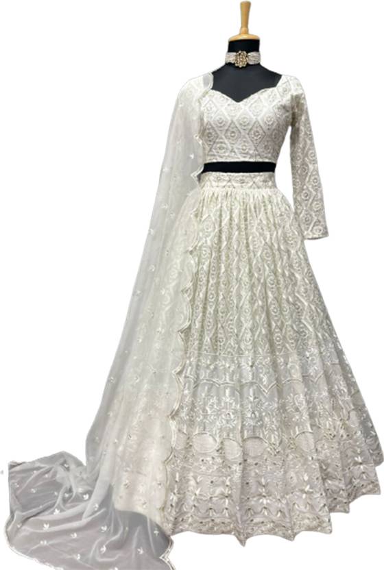 ADOLTEXTILE Embroidered Semi Stitched Lehenga Choli (Light Blue)