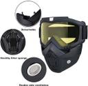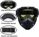 Frame Material: TPU super toughness, any kneading, not easy to break? soft and lightweight. Lens material: Polycarbonate, effective wear-resistant, anti-scratch, excellent all-weather anti-ultraviolet performance, blocking the damage of light to the eyes and preventing wind and dust. Sponge: High-density comfort sponge that effectively cushions facial pressure, with padding on the outer edge to keep your face comfortable and safe. Removable goggle mask ?Detachable masks and goggles are used separately to match your other helmets and masks. Breathable ?The breathable mouth filter and holes have good airflow avoid direct contact between mouth and mask?effectively exclude the hazardous material. Ajustable non-slip strap?cotton high elastic band, which can freely adjust the length. The non-slip strap fits any size of head, providing a comfortable wearing experience and well protection. MULTI-PURPOSE: Suitable for outdoor sports such as cycling, motorcycle, horse riding, snowmobiling, skiing, rock climbing, airsoft, paintball, jungle CF games, etc. It is a great gift for friends or family.
