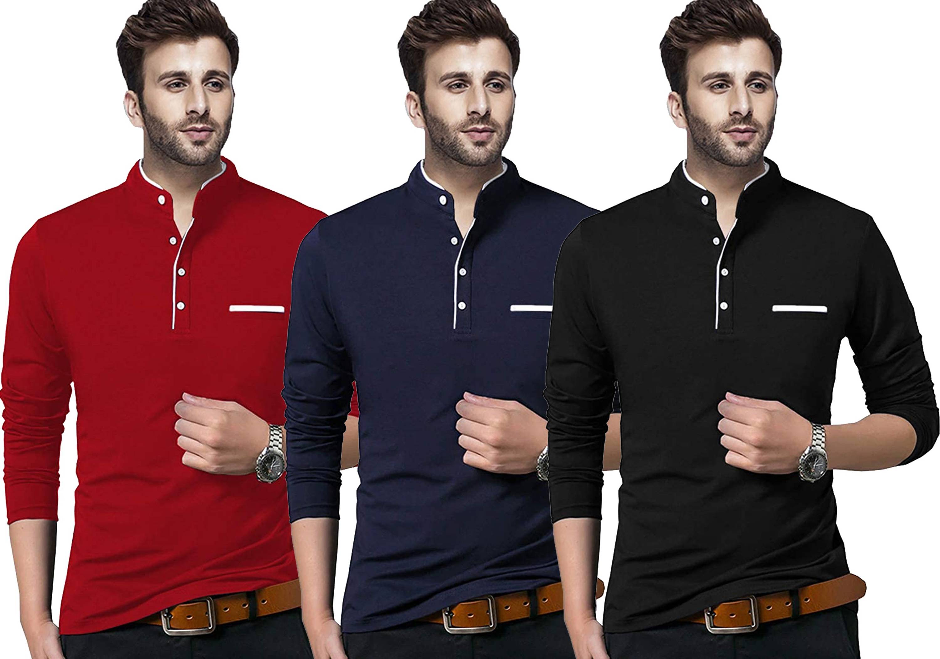 Unite Wear Solid Men Mandarin Collar Dark Blue, Maroon, Black T-Shirt