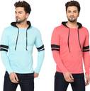 Adorbs Pack of 2 Men Solid Hooded Neck Cotton Blend Red, Blue T-Shirt