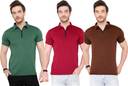 Pack of 3 Men Solid Polo Neck Cotton Blend Multicolor T-Shirt
