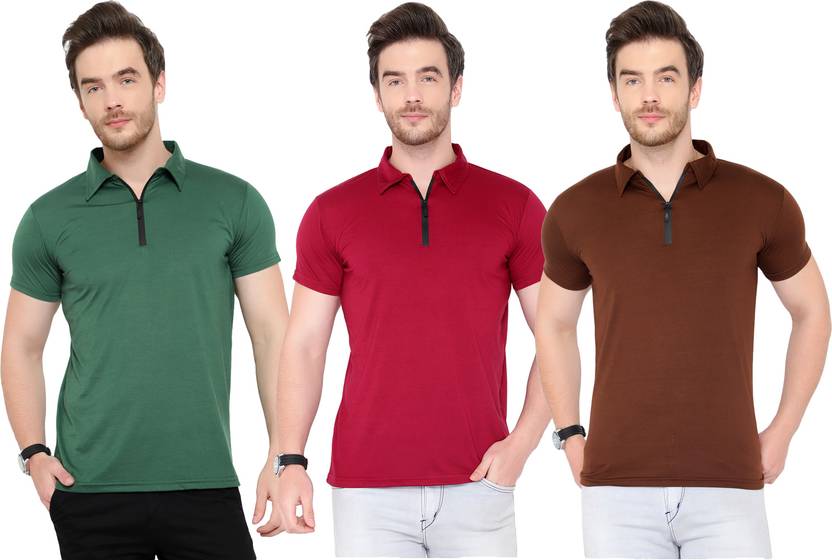 Adorbs Solid Men Polo Neck Multicolor T-Shirt