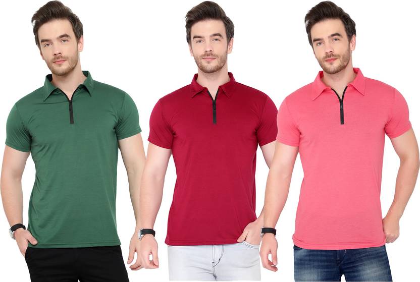 Adorbs Solid Men Polo Neck Multicolor T-Shirt