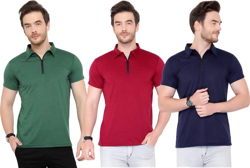 Adorbs Solid Men Polo Neck Multicolor T-Shirt