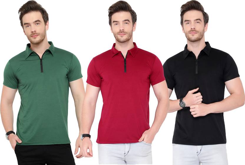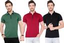 Pack of 3 Men Solid Polo Neck Cotton Blend Multicolor T-Shirt