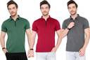 Pack of 3 Men Solid Polo Neck Cotton Blend Multicolor T-Shirt