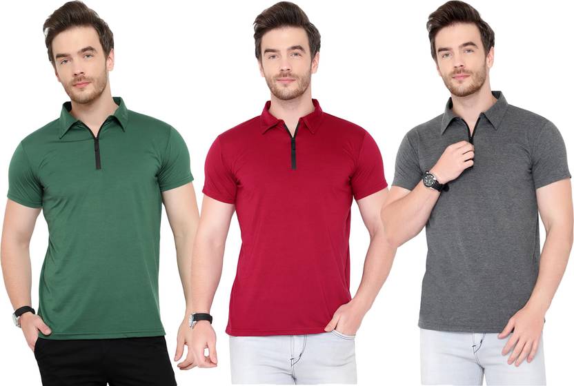 Adorbs Solid Men Polo Neck Multicolor T-Shirt