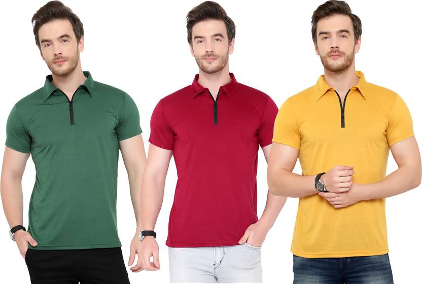 Adorbs Solid Men Polo Neck Multicolor T-Shirt