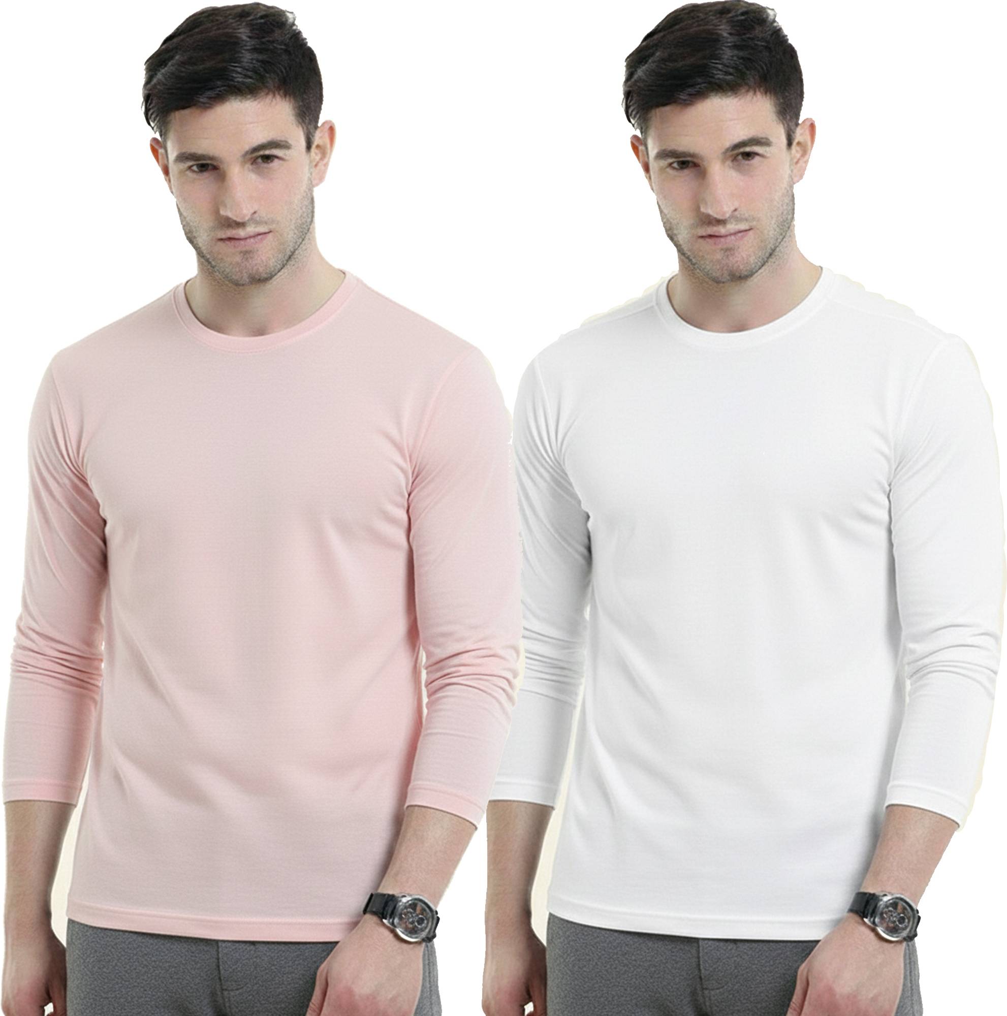 Pack of 2 Men Solid Round Neck Polyester Multicolor T-Shirt
