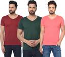 Pack of 3 Men Solid V Neck Cotton Blend Dark Green, Maroon, Pink T-Shirt