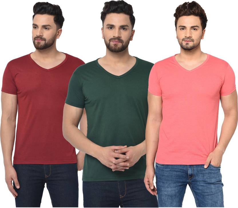 Adorbs Solid Men V Neck Dark Green, Maroon, Pink T-Shirt