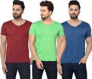 Pack of 3 V Neck T-Shirt Combo of 3 Men Solid V Neck Cotton Blend Multicolor T-Shirt
