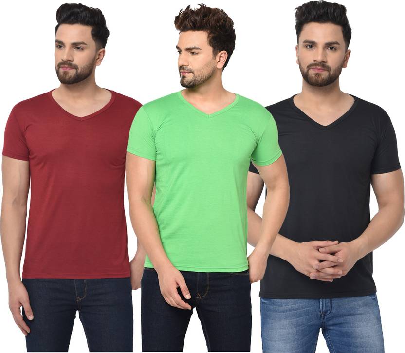 Jangoboy Solid Men V Neck Multicolor T-Shirt