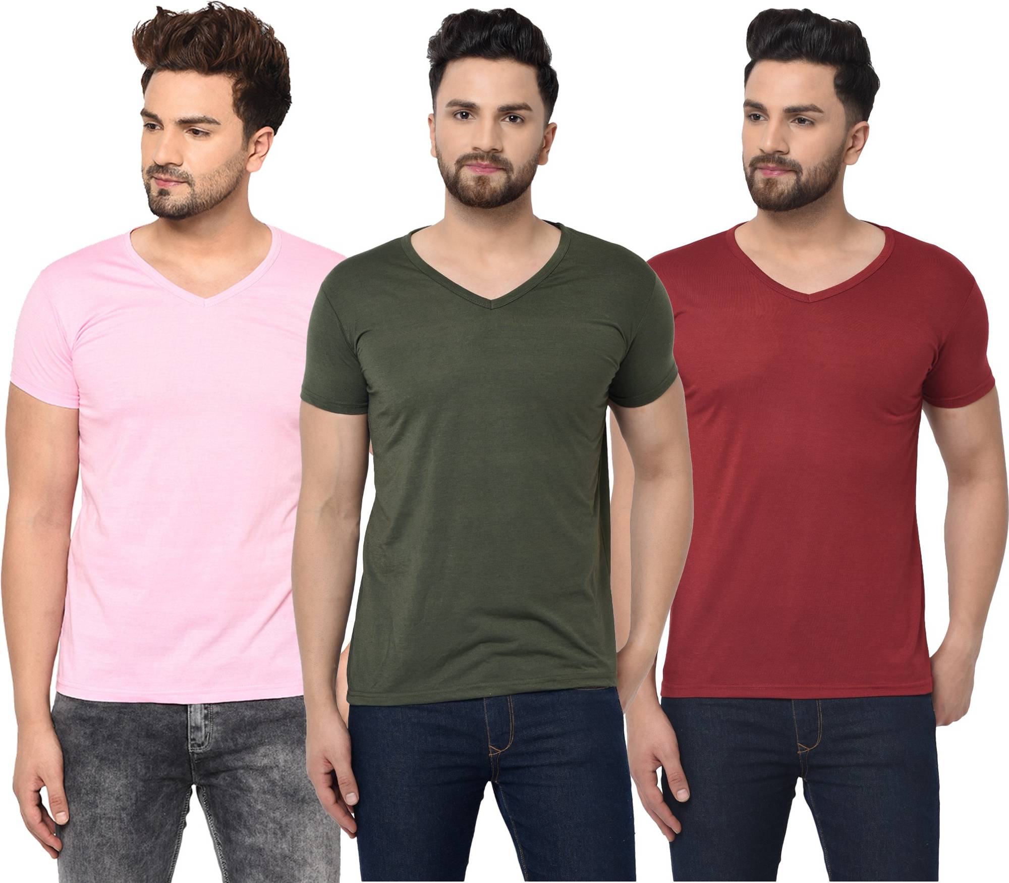 Consist of 3 V Neck Half Sleeve T-shirts Combo Pack