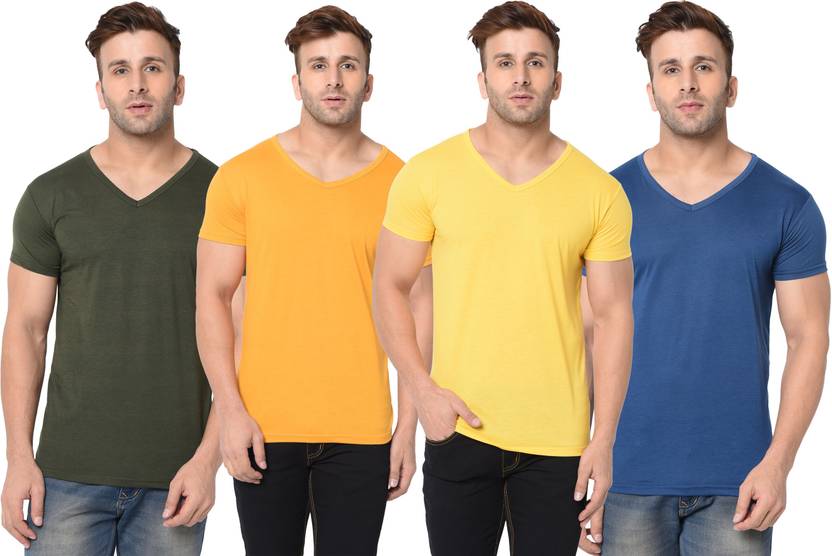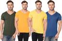 Adorbs Pack of 4 V neck Combo T-shirts Multicolor Men Solid V Neck Cotton Blend Multicolor T-Shirt