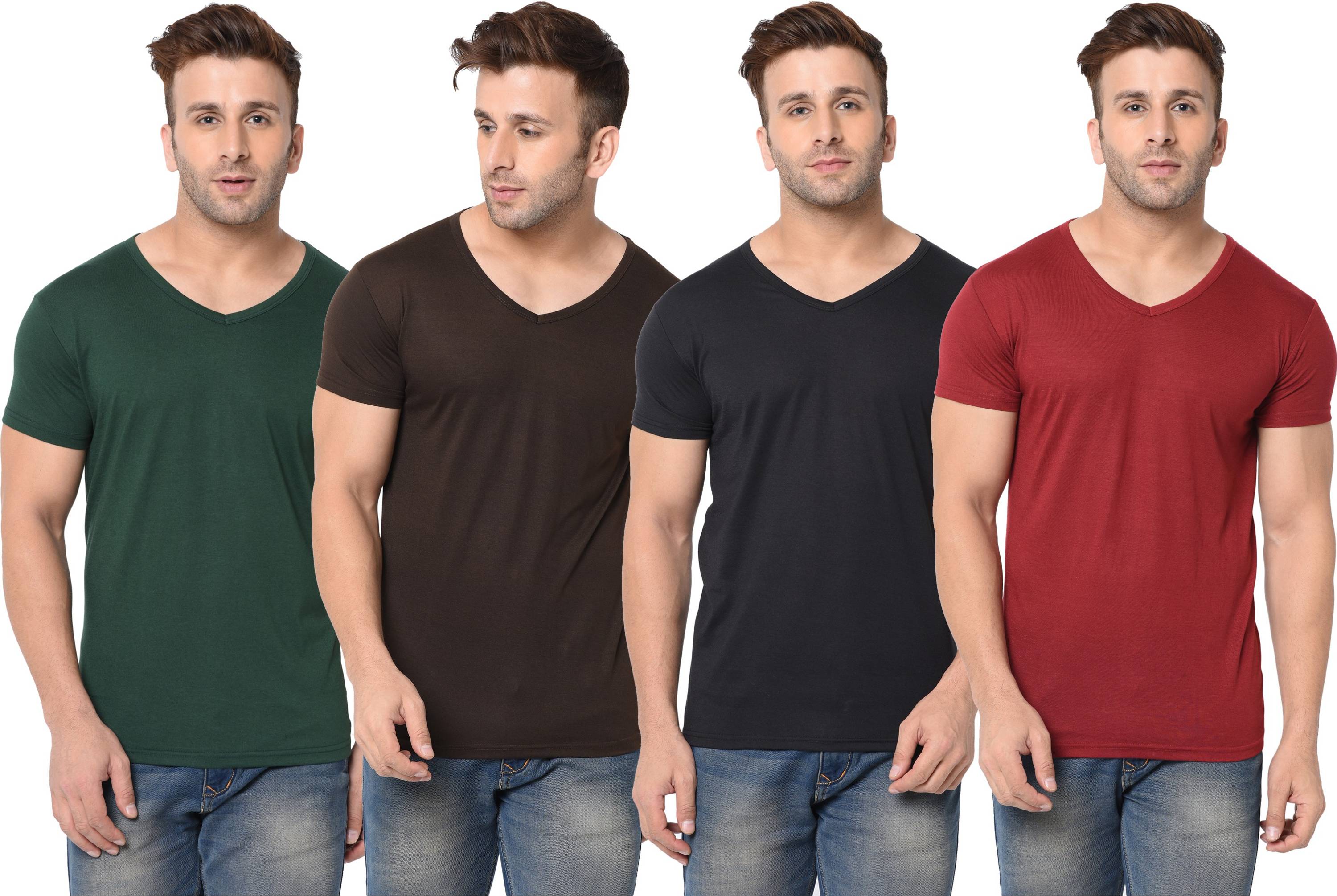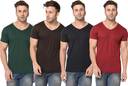Pack of 4 Men Solid V Neck Cotton Blend Multicolor T-Shirt
