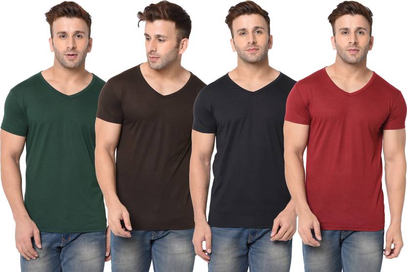 Adorbs Solid Men V Neck Multicolor T-Shirt