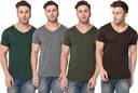 Pack of 4 Men Solid V Neck Cotton Blend Multicolor T-Shirt