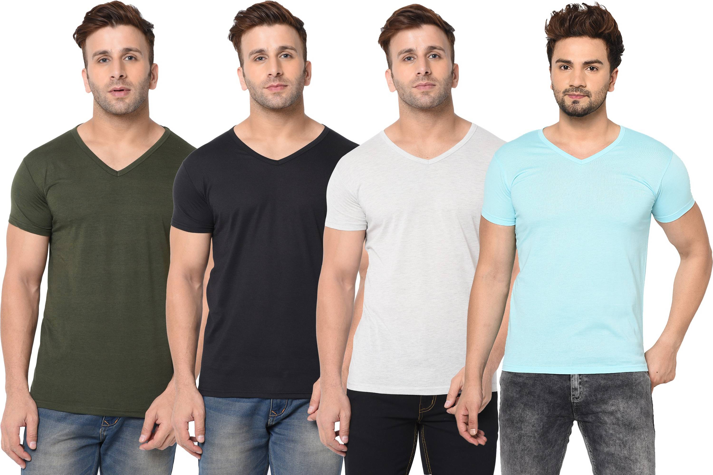 Pack of 4 V neck Combo T-shirts Multicolor Men Solid V Neck Cotton Blend Multicolor T-Shirt