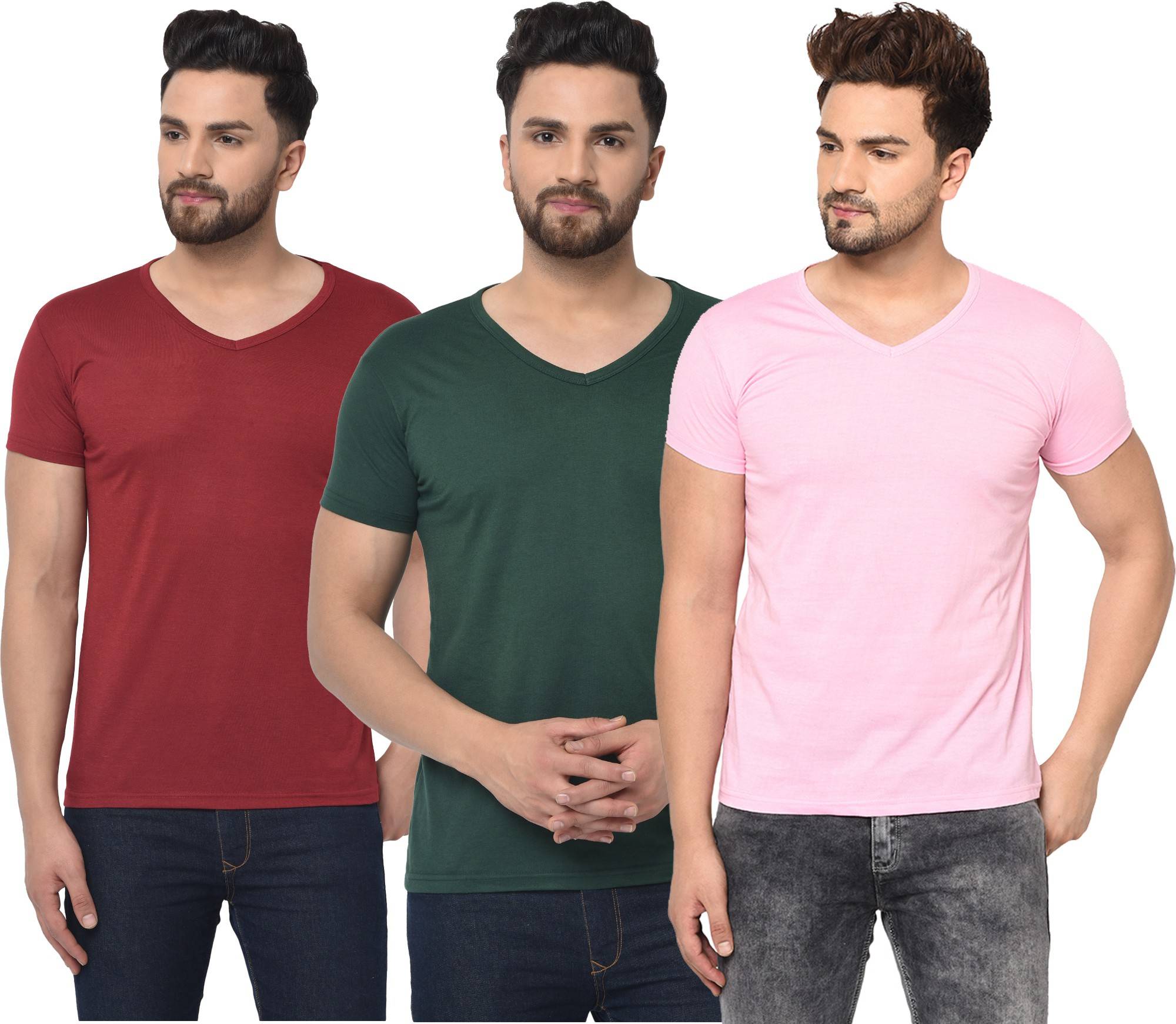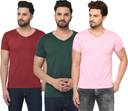 Pack of 3 Men Solid V Neck Cotton Blend Multicolor T-Shirt