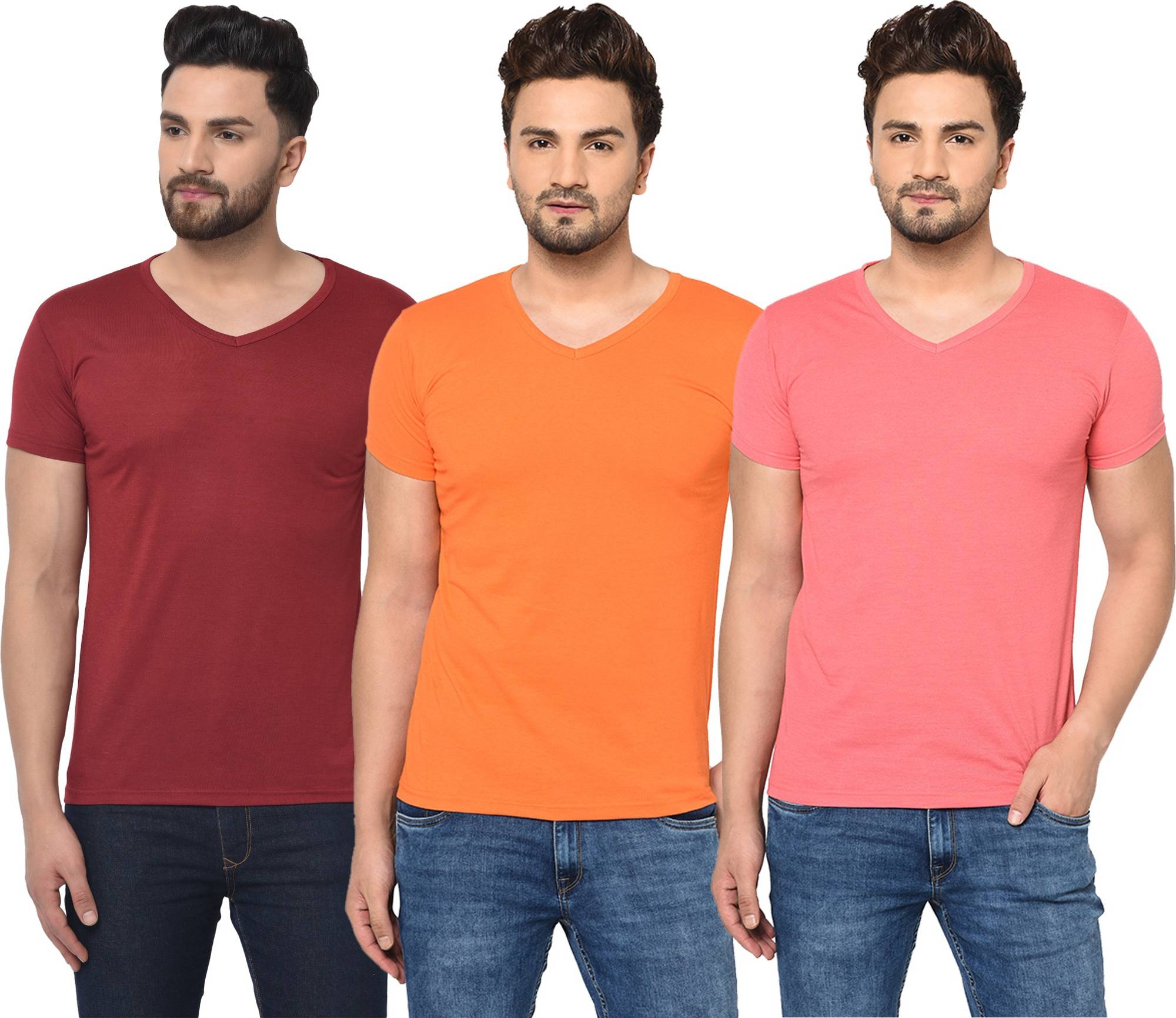Jangoboy Solid Men V Neck Multicolor T-Shirt