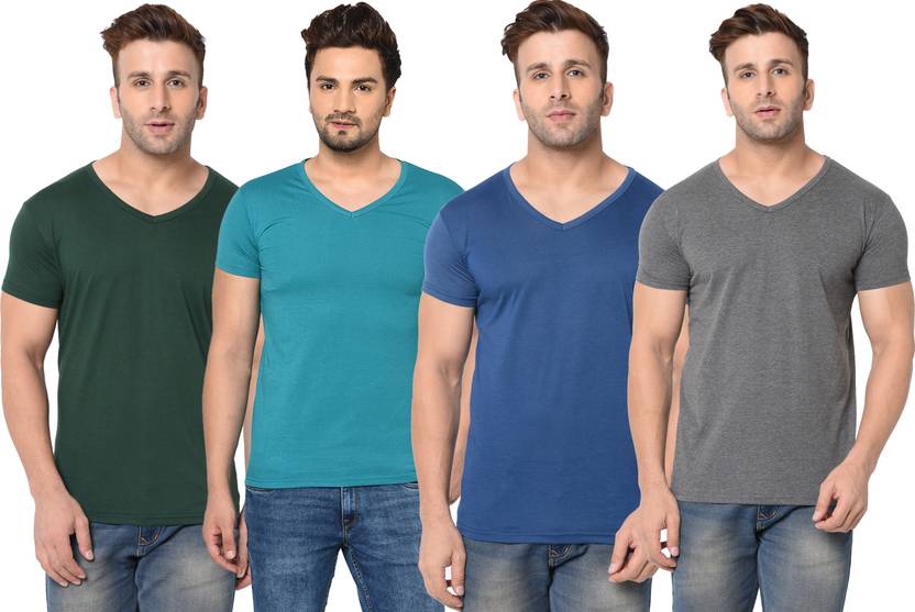 Pack of 4 V-Neck Combo tshirt Men Solid V Neck Cotton Blend Multicolor T-Shirt