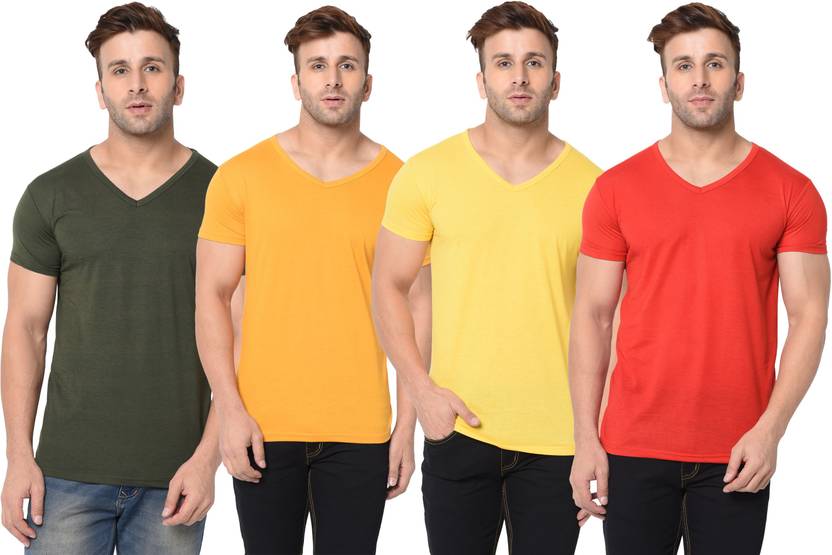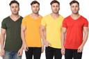 Adorbs Pack of 4 V neck Combo T-shirts Multicolor Men Solid V Neck Cotton Blend Multicolor T-Shirt