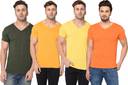 Adorbs Pack of 4 Men Solid V Neck Cotton Blend Multicolor T-Shirt