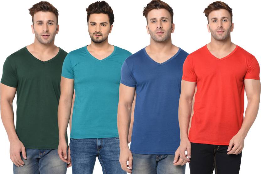 Pack of 4 V-Neck Combo tshirt Men Solid V Neck Cotton Blend Multicolor T-Shirt