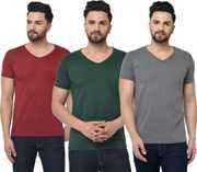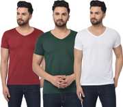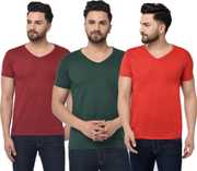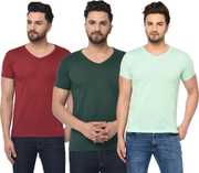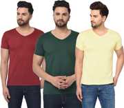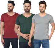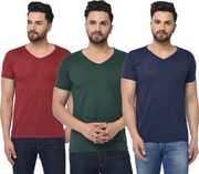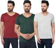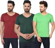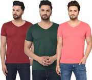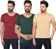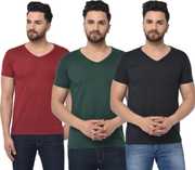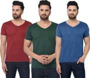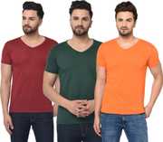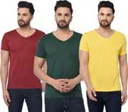 Pack of 3 Men Solid V Neck Cotton Blend Multicolor T-Shirt