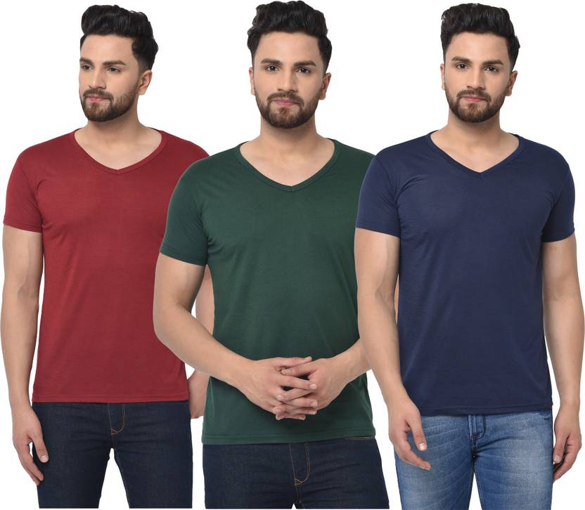Adorbs Solid Men V Neck Multicolor T-Shirt