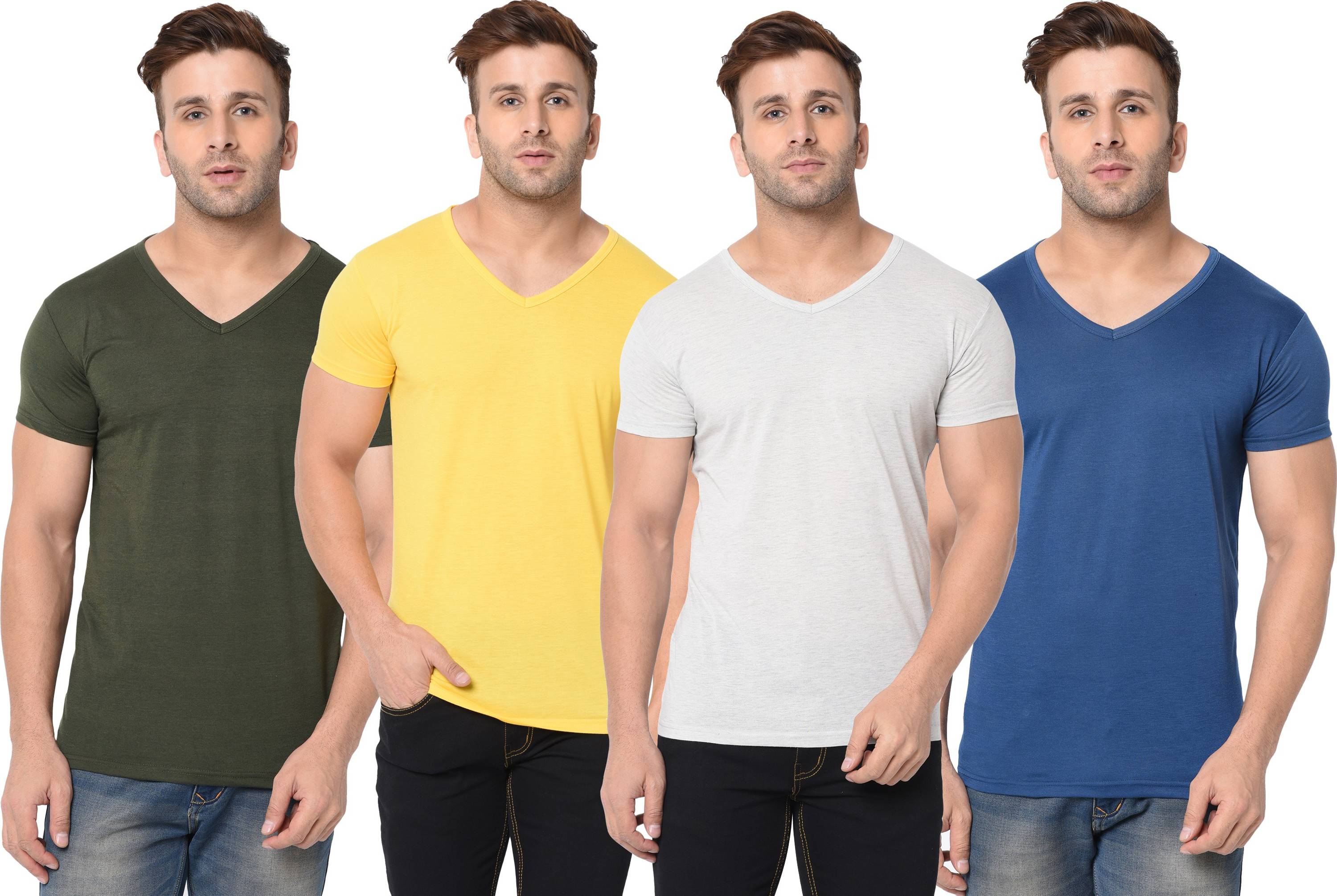 Consist of 4 V Neck Half Sleeve T-shirts Combo Pack