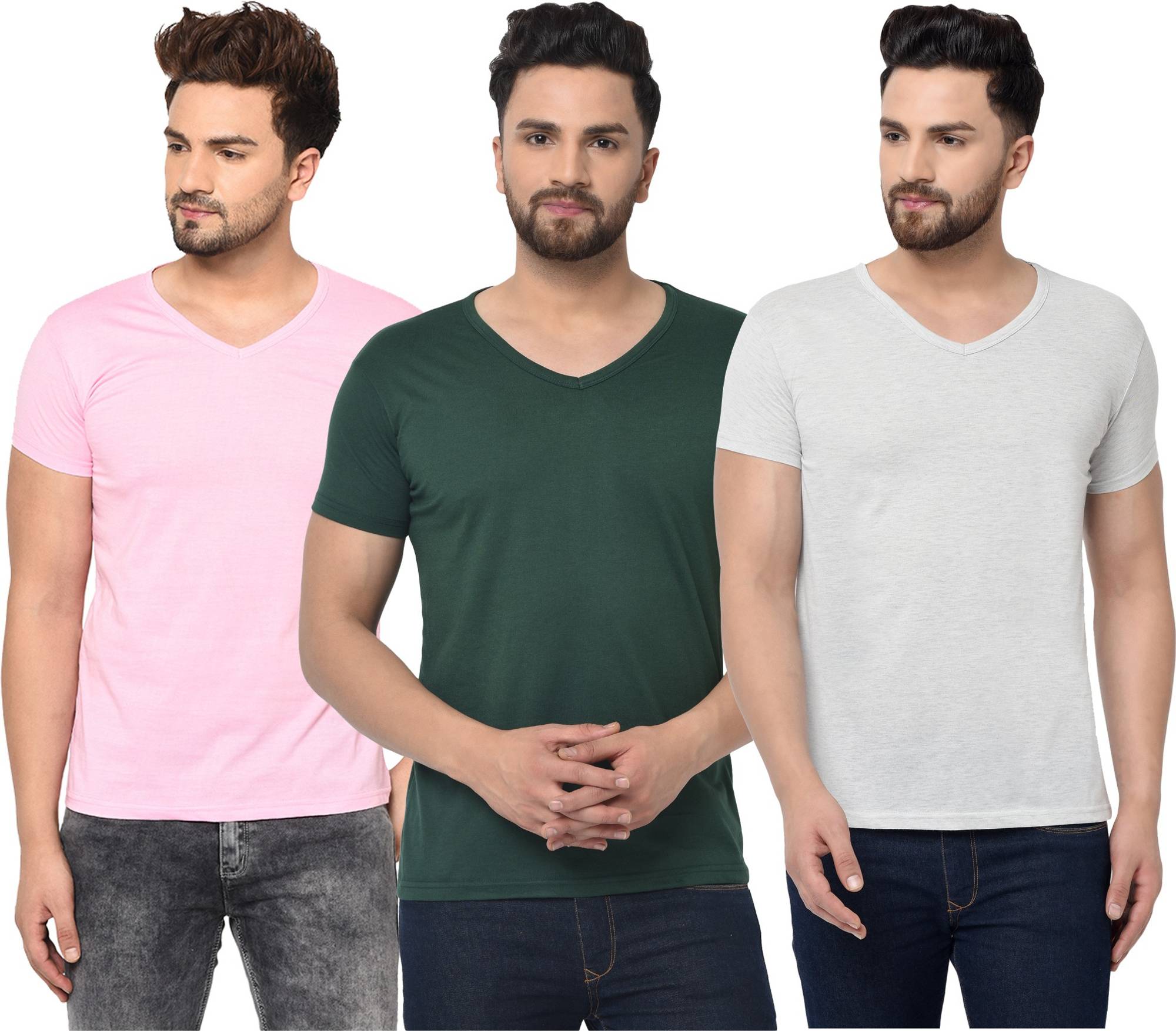 Consist of 3 V Neck Half Sleeve T-shirts Combo Pack