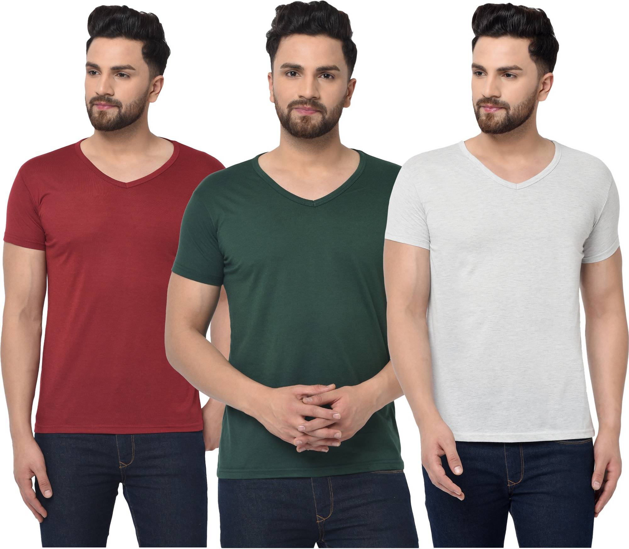 Pack of 3 Men Solid V Neck Cotton Blend Multicolor T-Shirt