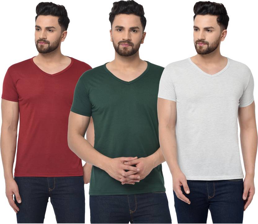 Adorbs Solid Men V Neck Multicolor T-Shirt