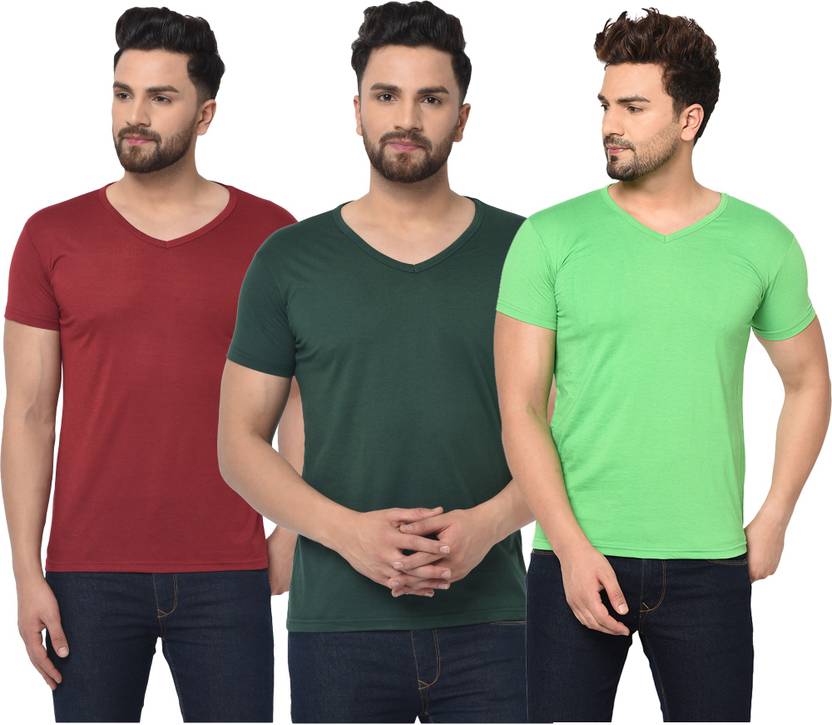 Adorbs Solid Men V Neck Multicolor T-Shirt