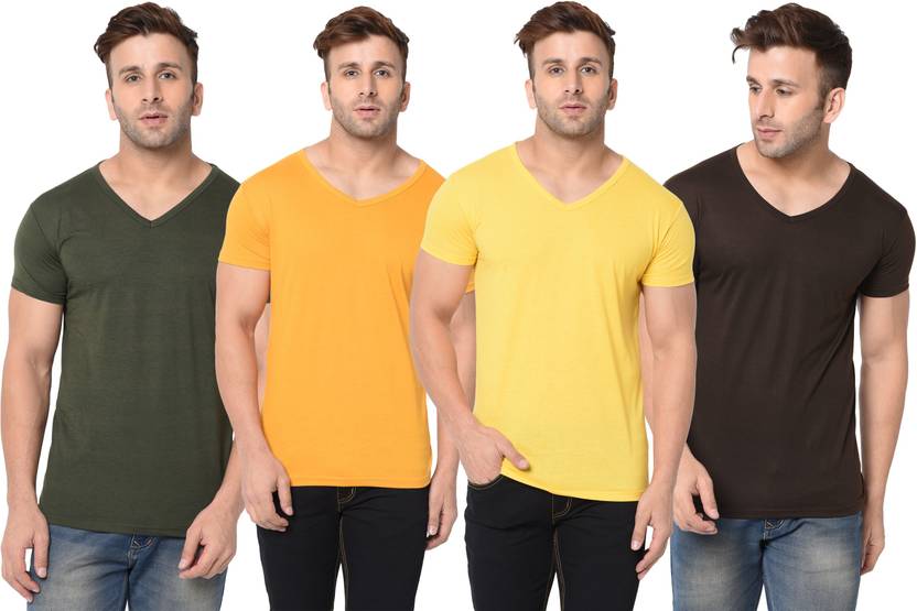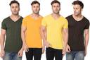 Adorbs Pack of 4 V neck Combo T-shirts Multicolor Men Solid V Neck Cotton Blend Multicolor T-Shirt