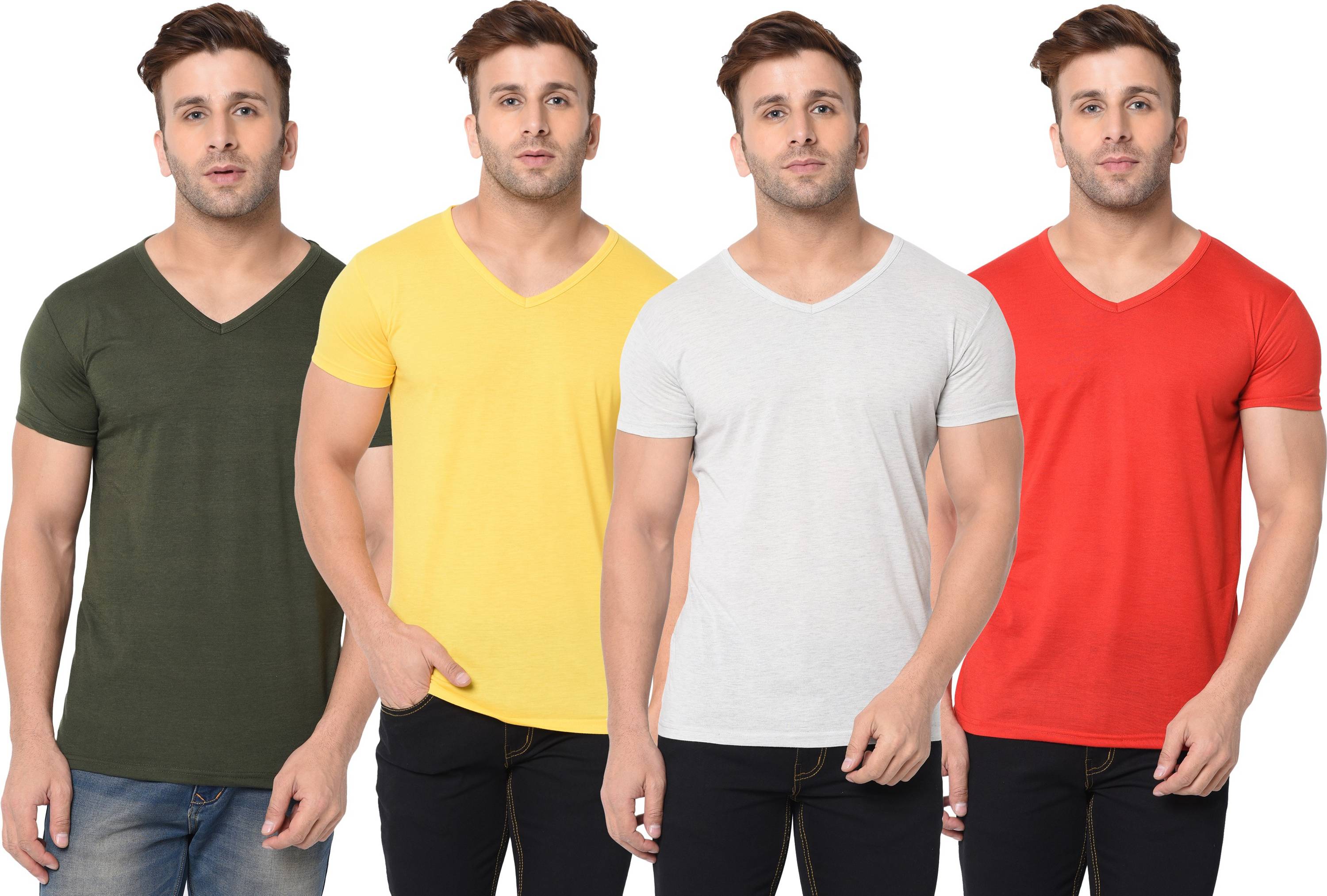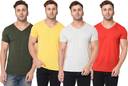 Pack of 4 V neck Combo T-shirts Multicolor Men Solid V Neck Cotton Blend Multicolor T-Shirt