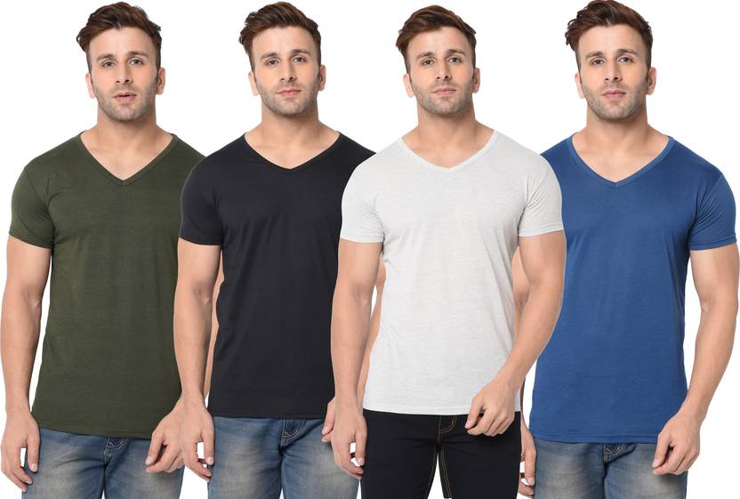 Pack of 4 Men Solid V Neck Cotton Blend Multicolor T-Shirt