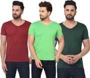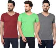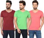 Pack of 3 Men Solid V Neck Cotton Blend Multicolor T-Shirt