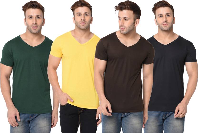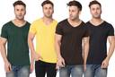 Pack of 4 Combo Of 4 T-Shirt Men Solid V Neck Cotton Blend Multicolor T-Shirt