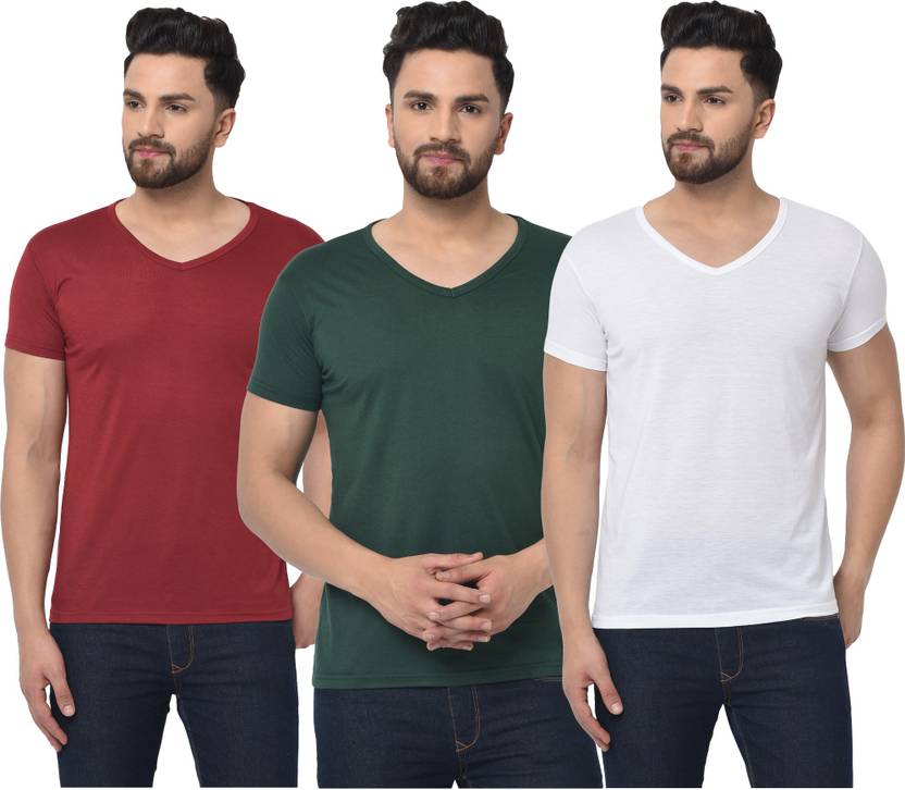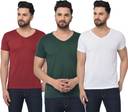 Pack of 3 Men Solid V Neck Cotton Blend Multicolor T-Shirt